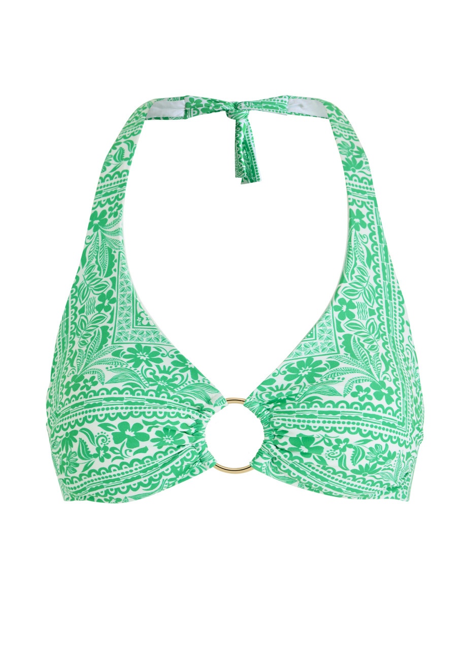 Info & Care Melissa Odabash stretch-polyamide bikini top; Printed, halterneck, ring embellishment at front, underwired cups, pleated details, bonded sides, fully lined; Ties at neck and back; 86% polyamide, 14% elastane; Hand wash; Coordinating items available; Size & Fit Model is 5'9"/ 175cm and wears a size IT40;