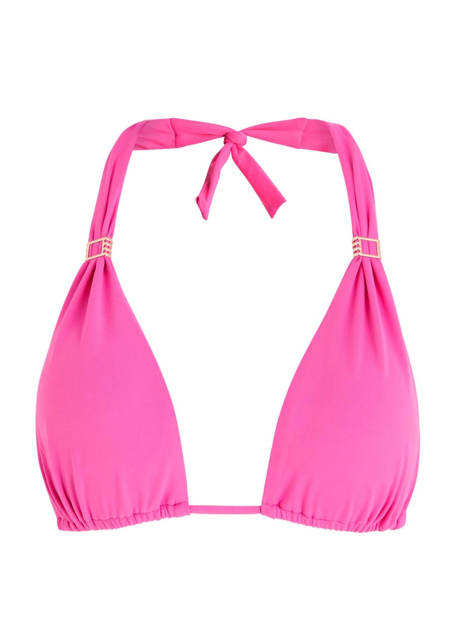 Info & Care Melissa Odabash stretch-polyamide bikini top; Halterneck, adjustable shoulder straps, sculpted embellishment, ruched, removable padded cups Ties at neck and back; 86% polyamide, 14% elastane; Hand wash Size & Fit Model is 5'9"/ 175cm and wears a size IT40