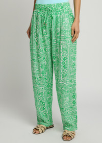 Info & Care Melissa Odabash woven trousers Floral print, elasticated drawstring waistband, two slip pockets; Pull on; 100% viscose Dry clean; Size & Fit Inside leg length: 32 inches/ 81.5cm Midweight Straight-leg cut Model is 5'9"/ 175cm and wears a size small;