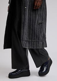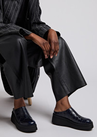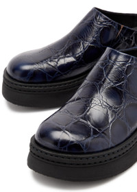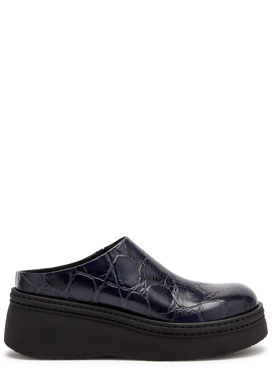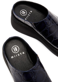 Info & Care Miista leather mules Heel measures approximately 2 inches/ 50mm with a 1.5 inch/ 40mm platform Crocodile-effect finish, elasticated cut-out, contrast stitching at mid sole Slip-on Size & Fit Only available in full sizes, go up to the nearest whole size if you take a half size;