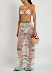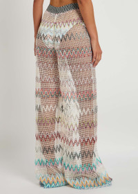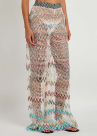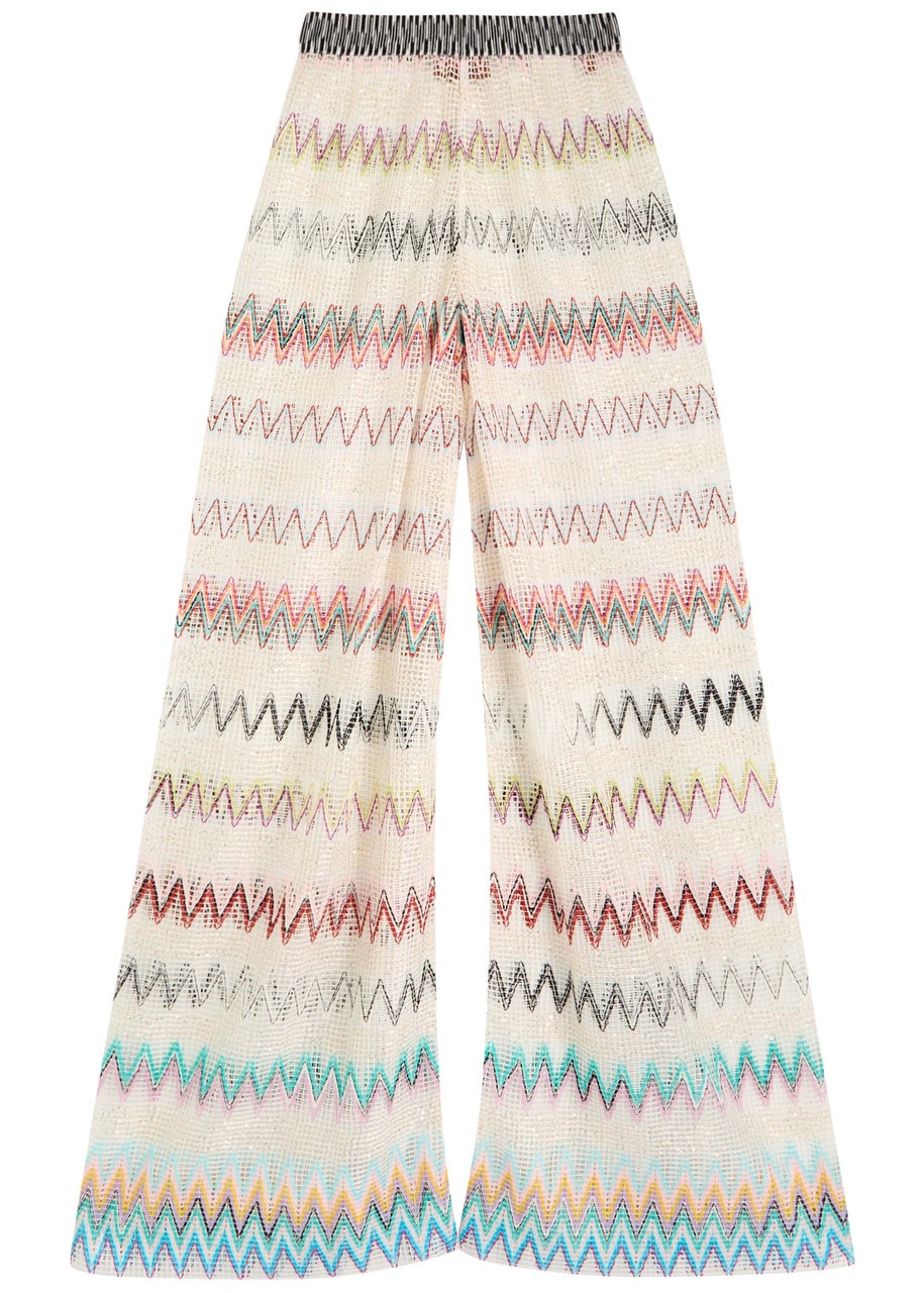 Info & Care Missoni knitted;trousers Open-knit design, zig-zag intarsia, sequin embellishments, contrasting elasticated waistband Pull on; 95% rayon, 3% polyamide, 2% polyester Dry clean Size & Fit Inside leg length: 33 inches/ 84cm Midweight Wide-leg cut Model is 5'9"/ 175cm and wears a size;FR36