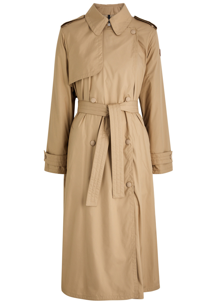 STYLE NOTES Moncler recreates the classic trench with its technical expertise for the Barbetane coat. Lightly padded with down for warmth, this timeless shell style is accented with signature details such as storm flaps, double-breasted fastenings and a belt to define the waist. INFO & CARE - Moncler shell trench coat - Padded, epaulettes, designer plaque at sleeve, adjustable press-stud fastening strap at cuffs, storm flaps at front and back, detachable belt, belt loops, two slip pockets, fully lined - Double-breasted press-stud fastenings at front - 100% polyester; lining: 100% polyamide; fill: 90% down, 10% feathers - Machine wash SIZE & FIT - Length shoulder to hem: 46.5 inches/ 118cm - Midweight - Loose fit, use belt to cinch the waist - Model is 5'9"/ 175cm and wears a size 1