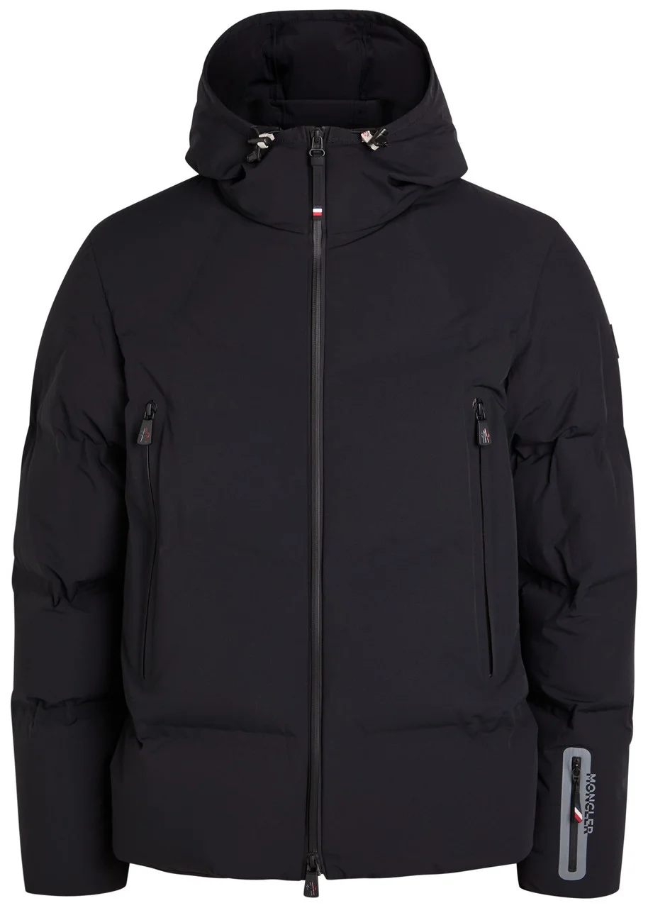 Info & Care Moncler Grenoble shell ski jacket Waterproof, windproof, padded, drawstring hood, high-neck, designer plaque at sleeve, zip-fastening pocket with designer stamp at cuff, elasticated cuffs, jersey cuffs underlay with thumbhole cut out, two zip-fastening front pockets, concealed drawstring hem, internal zip-fastening pocket, internal elasticated press-stud fastening lining, fully lined Two-way zip fastening through front 84% polyamide, 16% elastane; filling 90% down, 10% feather Machine wash Size & Fit Length shoulder to hem: 26 inches/ 66cm Midweight Regular fit, boxy style Model is 6'2"/ 188cm, chest size 38 inches and wears a size 2