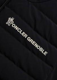 Info & Care Moncler Grenoble shell jacket Hood, padded front, embroidered designer plaque at sleeve, rubberised logo at chest, zip-fastening side pockets, fully lined Two-way zip fastening at front 85% polyamide, 15% elastane; lining: 100% polyamide Machine wash Size & Fit Length shoulder to hem: 25 inches/ 63.5cm Midweight Relaxed fit Model is 6'1"/ 185cm, chest size 38.5 inches and wears a size medium