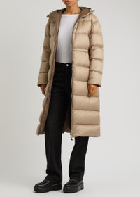 Style Notes Moncler's Boulogne shell coat offers both versatility and protection. Crafted to a long-line fit, this down-padded piece boasts water-repellent and reversible properties; one side features a matte finish and the other has a glossed and quilted appearance. It's also worked to a hooded profile with an adjustable waistband to define the silhouette. Info & Care Moncler shell coat Reversible, quilted, drawstring hood at high-neck, logo plaque at sleeve, two zip-fastening front pockets, internal drawstring waist, fully lined Two-way zip fastening through front 100% polyamide, lining: 100% polyamide; filling:90% down, 10% feather Machine wash Size & Fit Length shoulder to hem: 43.5 inches/ 110.5cm Midweight Regular fit Model is 5'9"/ 175cm and wears a size small