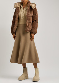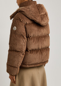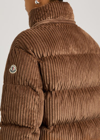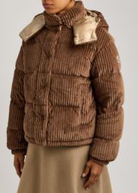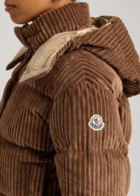 Style Notes The Daos puffer jacket by Moncler is inspired by 90s designs. Crafted from a textured corduroy to a short and regular fit, this quilted style is topped with a detachable hood and generously filled with down padding to offer maximum protection from the chill. Info & Care Moncler corduroy jacket; Quilted, detachable hood, high neck, designer plaque at sleeve, elasticated cuffs, concealed press-stud fastening slit pockets, internal drawstring hem, fully lined Concealed press-stud fastenings through front; 100% polyester; lining: 100% polyamide; fill: 90% down, 10% feathers Hand wash; Size & Fit Length shoulder to hem: 23 inches/ 58.5cm Midweight; Regular fit; Model is 5'9"/ 175cm and wears a size;1