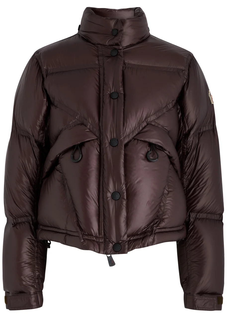 Style Notes The Julier jacket by Moncler Grenoble is part of the label's Day-Namic collection that's created for the outdoors. Padded with down and feathers, this quilted style features a concealable hood at the high collar and can even be folded down into a transportable pouch for on-the-go. Info & Care Moncler Grenoble glossed nylon jacket; Part of the Moncler Grenoble Day-Namic collection Can be folded into a transportable pouch;; Concealed hood at high neck, quilted, designer plaque at sleeve, Velcro-fastening elasticated cuffs, two concealed zip-fastening pockets, logo embossed zip pulls, reflective logo print at back, perforated designer plaque at back, concealed zip-fastening pocket at press-stud overlay, 'pack you jacket' print at back, internal drawstring hem, fully lined; 100% polyamide; fill: 90% down, 10% feathers Hand wash; Size & Fit Length shoulder to hem: 21.5 inches/ 54.5cm Midweight; Regular, boxy fit; Model is 5'9"/ 175cm and wears a size;1
