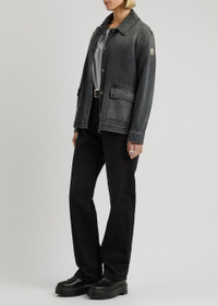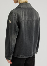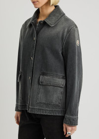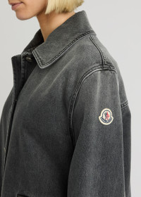 Info & Care Moncler denim;jacket Dropped shoulders, designer applique at sleeve, button-fastening cuffs, two front flap pockets, designer-engraved hardware, faded finish Button-fastenings through front 100% cotton Machine wash cold inside out to avoid colour transfer Size & Fit Length shoulder to hem: 25 inches/ 63.5cm Midweight Relaxed fit Model is 5'9"/ 175cm and wears a size IT40