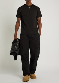 Info & Care Moncler Grenoble cotton T-shirt Rubberised designer print at ribbed crew-neck and back, designer tag at side hem Slips on 100% cotton Machine wash Size & Fit Length shoulder to hem: 27 inches/ 68.5cm Midweight Relaxed fit Model is 6'1"/ 185cm, chest size 38.5 inches and wears a size medium
