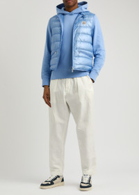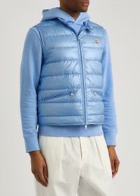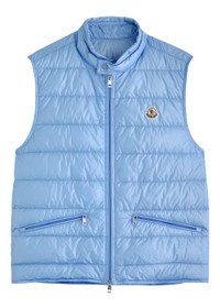 Info & Care Moncler shell gilet Quilted, press-stud fastening tab at high-neck, designer applique at chest, two zip-fastening front pockets, fully lined Two-way zip fastening through front 100% polyamide; lining: 100% polyamide; fill: 90% down, 10% feathers (goose) Machine wash Size & Fit Length shoulder to hem: 23 inches/ 58.5cm Midweight Slim fit Model is 6'3"/ 191cm, chest size 38 inches and wears a size 2