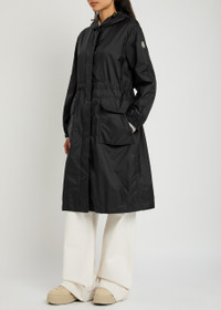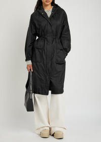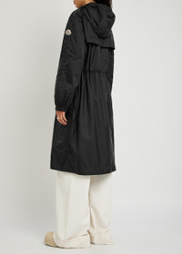 Info & Care Moncler;nylon;parka Water-repellent, adjustable toggle-fastening;hood, designer applique at sleeve, elasticated cuffs, concealed toggle-fastening waist, press-stud fastening pockets, storm flap at back Partially concealed press-stud and two-way zip fastenings at front 100% polyamide Machine wash Size & Fit Length shoulder to hem: 42 inches/ 106cm Midweight Loose fit, use drawstring to cinch the waist Model is 5'9"/ 175cm and wears a size;0