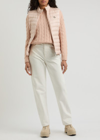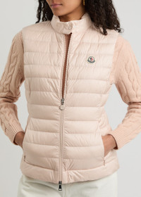 Info & Care Moncler shell gilet Quilted, press-stud fastening high-neck, darted bodice, designer applique, zip-fastening side pockets, fully lined Two-way zip-fastening through front 100% polyamide; filling: 90% down, 10% feather Hand wash Size & Fit Length shoulder to hem: 23.5 inches/ 60cm Midweight Regular fit Model is 5'9"/ 175cm and wears a size 0