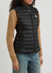 Info & Care Moncler shell gilet Quilted, press-stud fastening high-neck, darted bodice, designer applique, zip-fastening side pockets, fully lined Two-way zip-fastening through front 100% polyamide; filling: 90% down, 10% feather Hand wash Size & Fit Length shoulder to hem: 23.5 inches/ 60cm Midweight Regular fit Model is 5'9"/ 175cm and wears a size 0