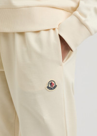 Info & Care Moncler cotton sweatpants Elasticated drawstring waistband, side slip pockets, designer applique, elasticated cuffs Pull on 100% cotton Machine wash Size & Fit Inside leg length: 29 inches/ 73.5cm Midweight Relaxed tapered-leg cut Model is 5'9"/ 175cm and wears a size small