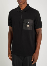 Info & Care Moncler pique cotton polo;shirt Zip-fastening neck, designer applique at press-stud fastening chest flap pocket, ribbed trims Slips on 100% cotton Machine wash Size & Fit Length shoulder to hem: 28 inches/ 71cm Midweight Relaxed, boxy fit Model is 6'1"/ 185cm, chest size 38.5 inches and wears a size medium
