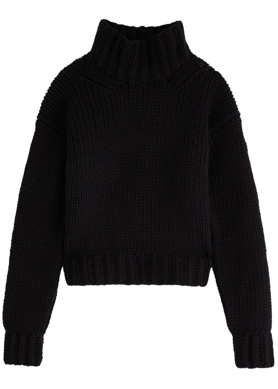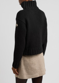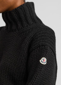 Info & Care Moncler wool-blend jumper Polo-neck, dropped shoulders, designer applique at sleeve, ribbed trims Slips on 70% wool, 30% acrylic Dry clean Size & Fit Length shoulder to hem: 21 inches/ 53.5cm Midweight Relaxed fit Model is 5'10"/ 178cm and wears a size small