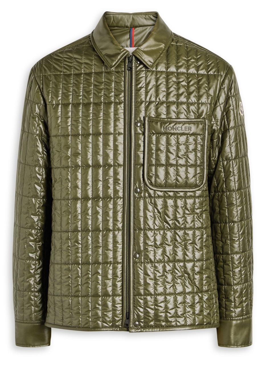 Info & Care Moncler shell jacket Quilted, designer applique at sleeve, adjustable press-stud fastening cuffs, rubberised logo print at chest patch pocket, two zip-fastening front pockets, designer-engraved hardware, piped trims, fully lined Zip and press-stud fastening through front 100% polyester; lining: 100% polyester; filling: 73% polyester, 17% polyethylene Hand wash Size & Fit Length shoulder to hem: 27 inches/ 68.5cm Midweight Regular fit Model is 6'1"/ 186cm, chest size 38 inches and wears a size 2