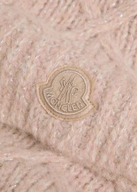 Info & Care Moncler alpaca-blend scarf Aran stitch, metallic weave, designer crest applique, ribbed trims;; 56% alpaca, 31% polyamide, 5% viscose, 5% wool, 3% metallised fibre Dry clean Size & Fit Width: 25cm Length: 230cm