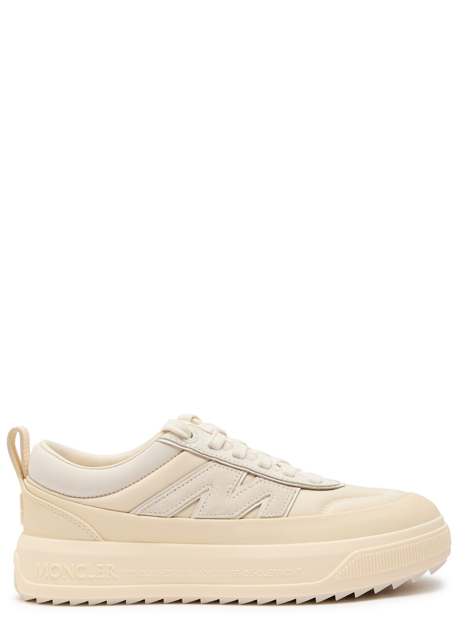 Info & Care Moncler nylon sneakers Quilted, panelled, designer plaque at tongue and heel, brushed suede designer-appliqued side, canvas and nubuck panels, heel tab,;designer-embossed sculpted EVA midsole, gripped;rubber sole, round toe; Lace-up front; Size & Fit Only available in full sizes, go up to the nearest whole size if you take a half size