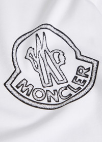 Info & Care Moncler cotton T-shirt Ribbed crew-neck, designer applique at sleeve, designer print at chest Slips on 100% cotton Machine wash Size & Fit Length shoulder to hem: 27 inches/ 68.5cm Midweight Regular fit Model is 6'1"/ 185cm, chest size 38.5 inches and wears a size medium