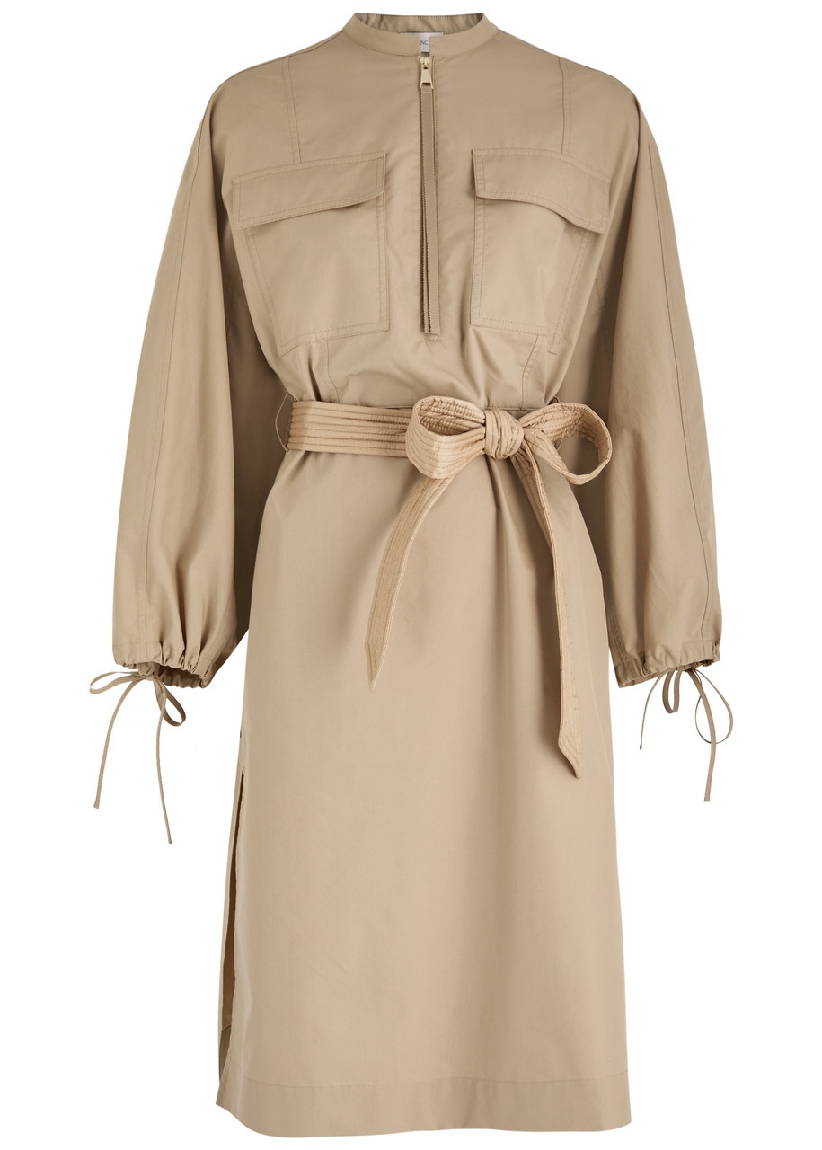Belted Poplin Midi Dress
