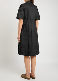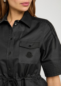 Info & Care Moncler cotton-blend shirt dress Press-stud fastening neck,;pleats at sleeves, designer applique at press-stud fastening chest pocket, drawstring waist, pleated semi-sheer skirt, partially lined Press-stud fastenings through front 89% cotton, 11% polyester Dry clean Size & Fit Length shoulder to hem: 43.5 inches/ 110.5cm Midweight Relaxed fit, use drawstring to cinch the waist; Model is 5'11"/ 180cm and wears a size;IT40
