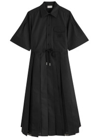 Moncler Pleated Cotton-blend Midi Shirt Dress
