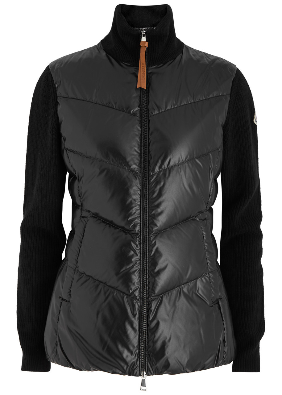 Style Notes Moncler's jacket is the perfect transitional piece for when the weather gets cooler. This zip-through style is knitted from wool and features quilted nylon panels through the front and back that are padded with down for added warmth. Info & Care Moncler wool jacket; High neck, quilted glossed nylon panels at front and back, designer plaque at sleeve, two concealed zip fastening pockets, logo debossed leather zip pull, ribbed trims Two-way zip fastening through front; Fabric1: 100% virgin wool; fabric 2: 100% polyamide; fill: 90% down, 10% feathers Dry clean; Size & Fit Length shoulder to hem: 26 inches/ 66cm Midweight; Slim fit Model is 5'9"/ 175cm and wears a size small;