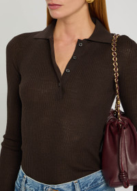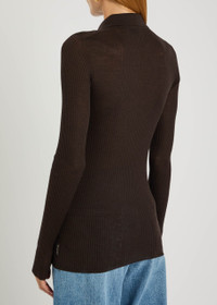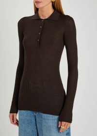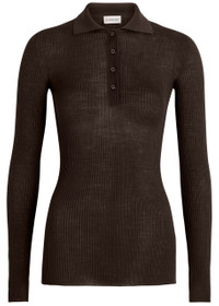 Info & Care Moncler wool polo top Ribbed, button-fastening neck, designer tag at side Slips on 100%;virgin wool Dry clean Size & Fit Length shoulder to hem: 25 inches/ 63.5cm Midweight Slim fit Model is 5'9"/ 175cm and wears a size small