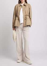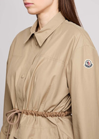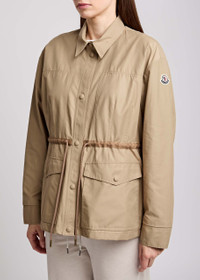 Info & Care Moncler cotton-blend poplin parka Dropped shoulders, designer plaque at sleeve, button-fastening cuffs, drawstring waist, press-stud fastening flap pockets at front, darted, fully lined Concealed press-stud fastenings through front 59% cotton, 41% polyamide; lining: 100% polyamide Dry clean Size & Fit Length shoulder to hem:; 25.5 inches/ 64.5cm Midweight Relaxed fit, use drawstring to cinch the waist Model is 5'9"/ 175cm and wears a size;0
