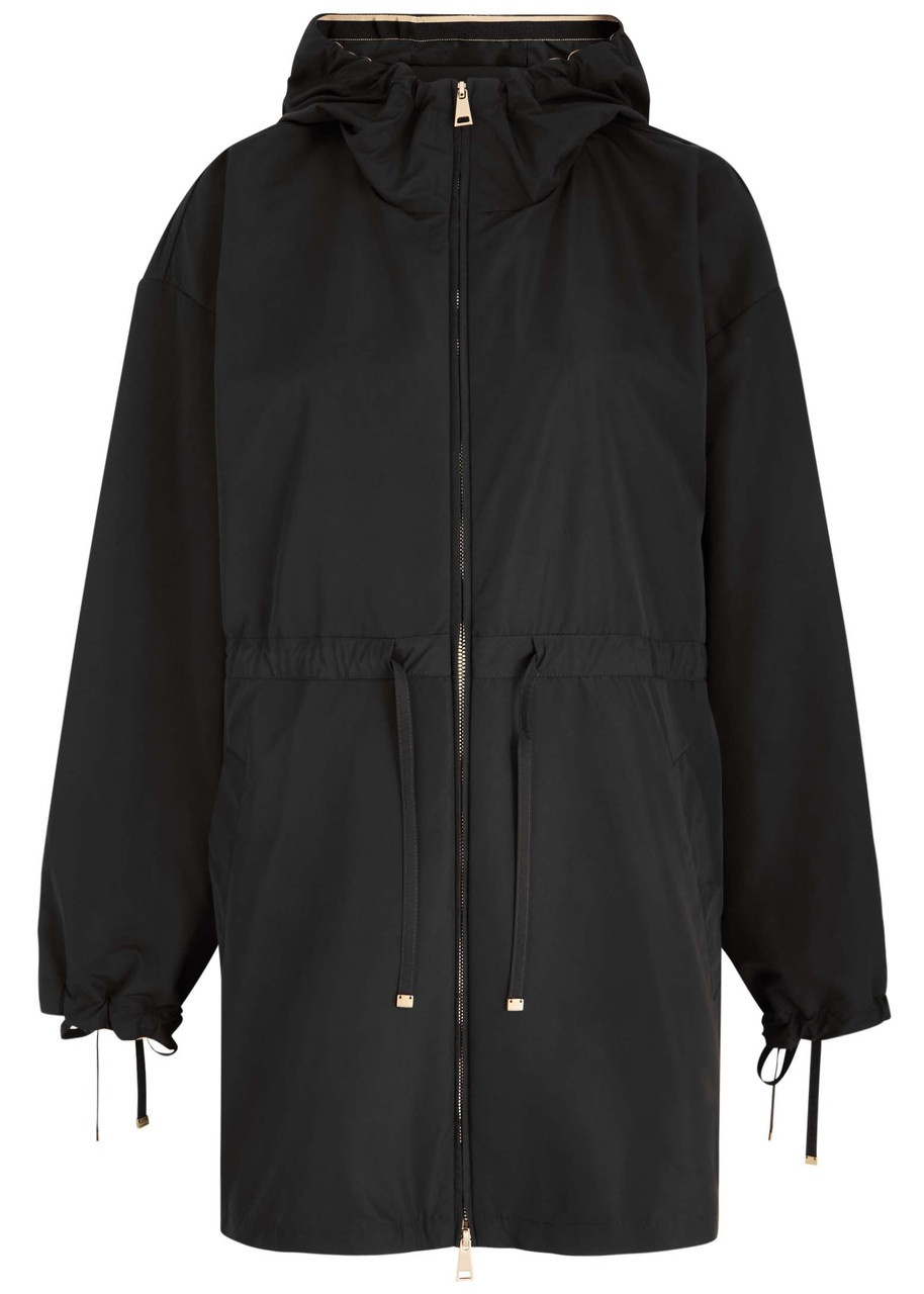 Info & Care Moncler shell parka Water-repellent, concealed drawstring hood at high-neck, dropped shoulders, designer leather plaque at sleeve, tie-fastening cuffs,;drawstring;waist, two side slip pockets, fully lined Two-way zip fastening through front; 100% polyester Hand wash Size & Fit Length shoulder to hem: 32 inches/ 81cm Midweight Relaxed fit, use drawstring to cinch;the waist Model is 5'9"/ 175cm and wears a size;0