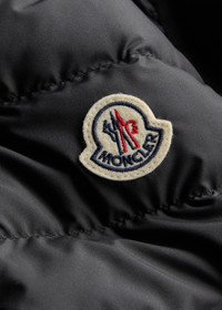 Info & Care Moncler shell jacket Padded, detachable jacket insert, stand collar, embroidered designer applique at chest, zip-fastening slip pockets, ribbed trims Two-way zip fastening at front 100% polyester Hand wash; Size & Fit Lengthy shoulder to hem: 26 inches/ 66cm Midweight Slightly relaxed fit Model is 6'2"/ 189cm, chest size 38 inches and wears a size;2