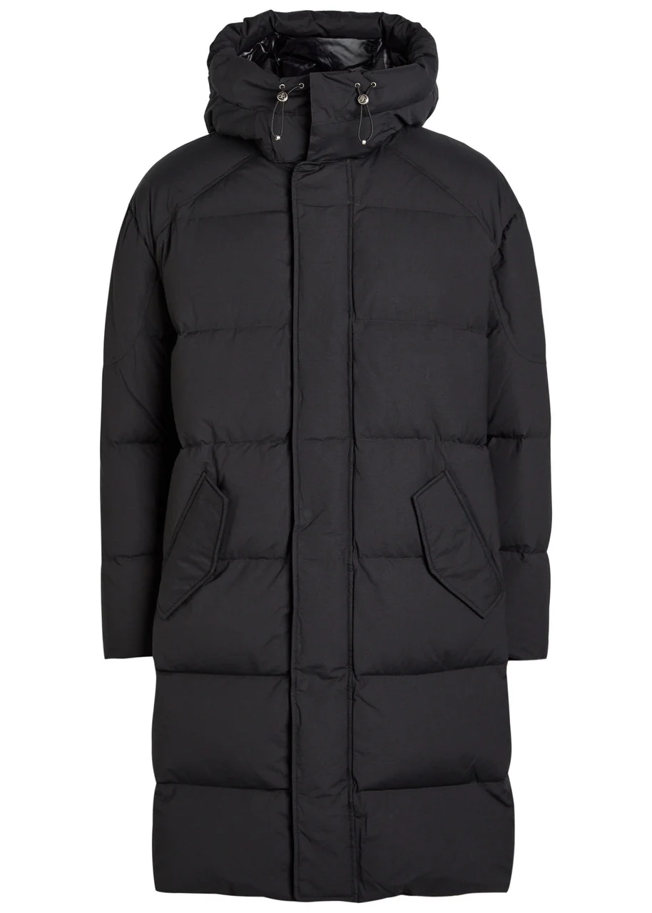 Info & Care Moose Knuckles shell coat Padded, detachable drawstring hood with adjustable tabs, designer plaque at sleeve, press stud fastening front flap pockets, zip-fastening side splits at hem, internal zip-fastening pockets, fully lined; Partially concealed two-way zip and press-stud fastening through front 57% recycled nylon, 40% cotton, 3% elastane; lining: 100% nylon; filling: 90% duck down, 10% feathers Machine wash; Size & Fit Length shoulder to hem: 40.5 inches/ 103cm Heavy weight Regular fit Model is 6'2"/ 188cm, chest size 38 inches and wears a size medium