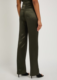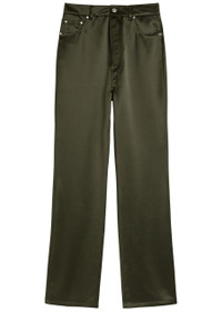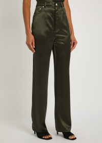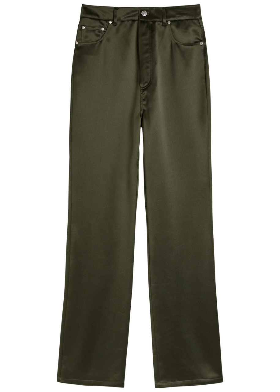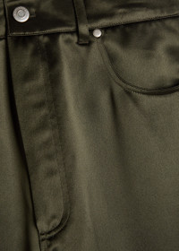 Info & Care Nanushka satin;trousers Belt loops, three front slip pockets, back patch pockets Partially concealed zip and button fastening at;front 74%;acetate, 26% polyester Machine;wash Coordinating items available Size & Fit Inside leg length: 32 inches/ 81.5cm Midweight Straight-leg cut Designed to sit at waist Model is 5'9"/ 175cm and wears a size small