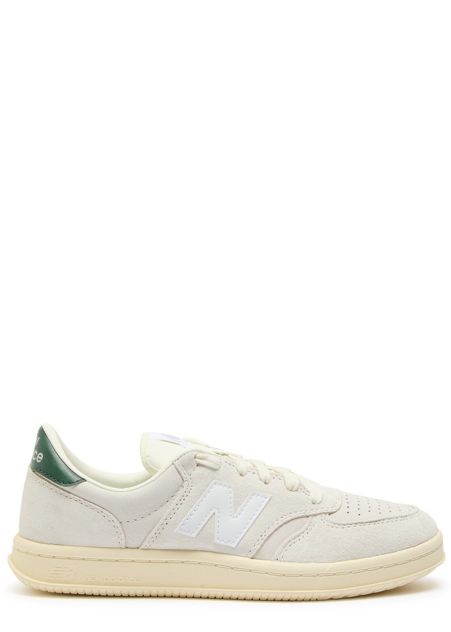 Info & Care New Balance leather sneakers Designer plaque at padded tongue, brushed suede panels, N logo applique at sides, designer stamp at heel, preforated details, debossed logo at foam midsole, gripped sole, round toe Lace-up front Size & Fit Only available in full sizes, go up to the nearest whole size if you take a half size;