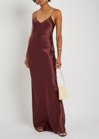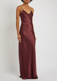 Info & Care Nili Lotan silk;gown Adjustable shoulder straps, V-neck,;side splits at hem Concealed zip fastening at side; 100%;silk Dry clean Size & Fit Length shoulder to hem: 62 inches/ 157.5cm Midweight Loose fit Model is 5'9"/ 175cm and wears a size small