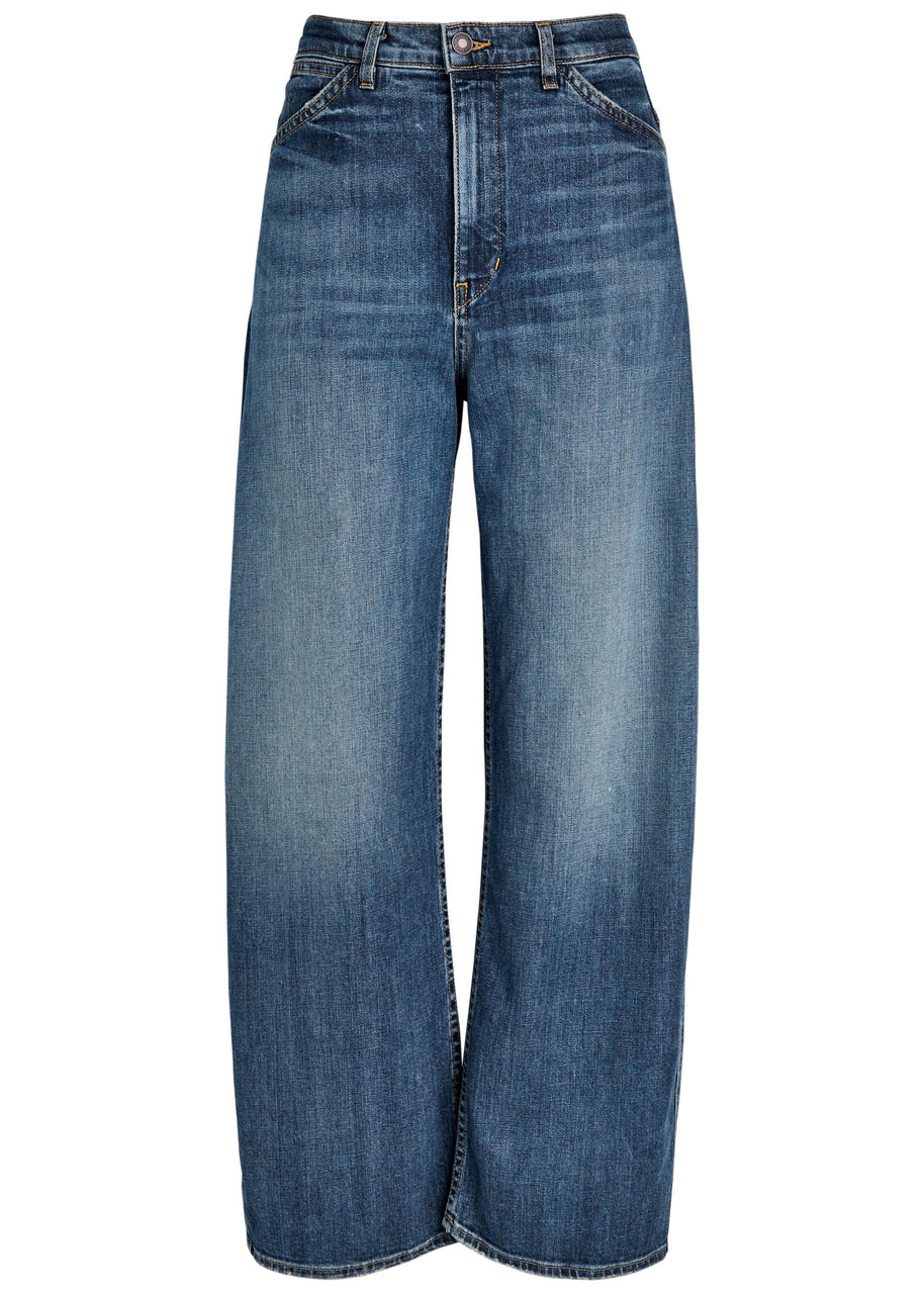 Info & Care Nili Lotan denim jeans Mid-rise fit, wide-leg cut, belt loops, five pockets, whiskered, distressed and faded finish Partially concealed zip and button fastenings at front 98% cotton, 2% polyurethane Machine wash cold inside out to avoid colour transfer Size & Fit Front rise: 11 inches/ 28cm Inside leg length: 27.5 inches/ 70cm Midweight Model is 5'9"/ 175cm and wears a size W27