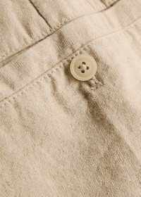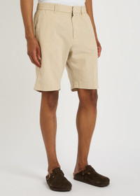 Info & Care NN.07 linen-blend shorts Elasticated waistband, two side slant pockets, pressed creases through legs, two back button-fastening slit pockets Concealed zip and hook fastening at front 55% linen, 45% organic cotton; lining: 100% cotton Machine wash Size & Fit Length waist to hem: 21 inches/ 53.5cm Midweight Regular;fit Model is 6'2"/ 188cm, chest size 38 inches and wears a size medium