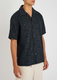 Info & Care NN.07 cotton shirt; Broderie anglaise, camp collar, designer tab at side Button fastenings through front 100% cotton Machine wash; Size & Fit Length shoulder to hem: 28 inches/ 71cm Midweight; Slightly relaxed fit; Model is 6'1"/ 185cm, chest size 38 inches and wears a size medium