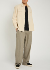 Info & Care NN.07 corduroy overshirt Press-stud fastening cuffs, press-stud fastening chest flap pocket, designer tab at side, curved hem longer back hem Press-stud fastening through front 100% organic cotton; Machine wash; Size & Fit Length shoulder to hem: 27 inches/ 69cm; back: 30inches/ 76.5cm; Midweight Relaxed fit Model is 6'2"/ 188cm, chest size 38 inches and wears a size medium