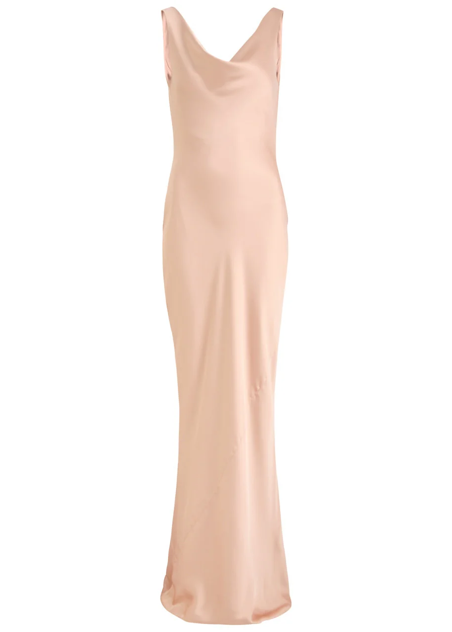 Info & Care Norma Kamali satin dress Cowl-neck, aymmetric design at skirt Slips on; 100% polyester Dry clean Size & Fit Length shoulder to hem: 65 inches/ 165cm Midweight Regular fit Model is 5'10"/ 178cm and wears a size small;