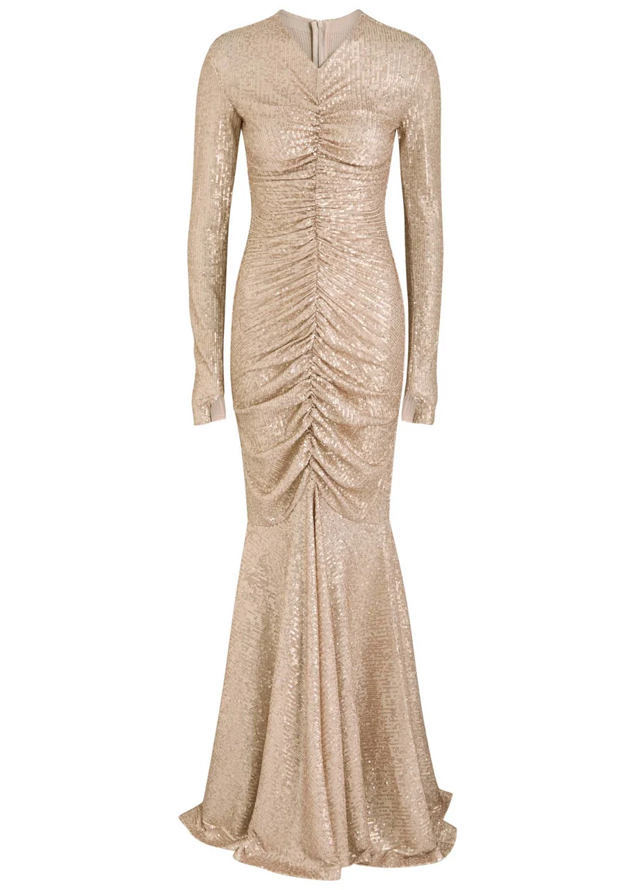 Norma Kamali Sequined Ruched Gown