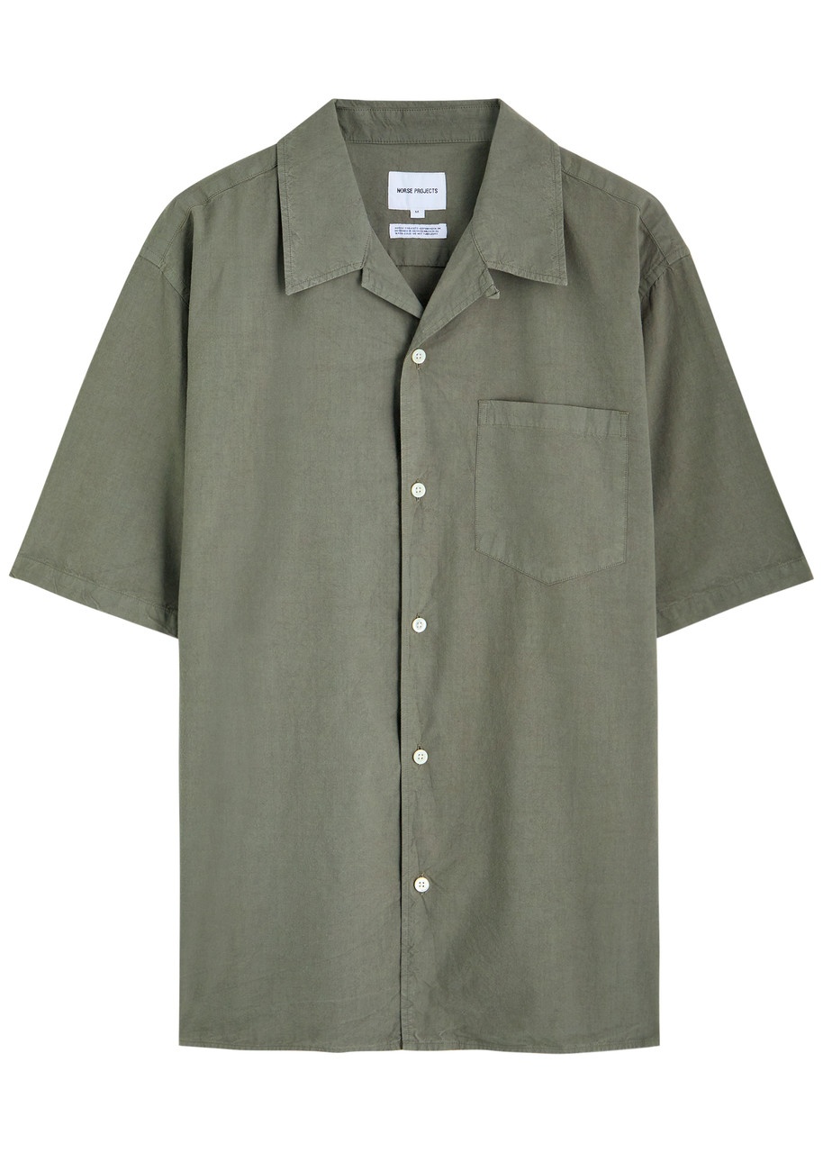 Info & Care Norse Projects cotton-blend shirt Camp collar, chest patch pocket Button fastenings through front 50% cotton, 50% lyocell Machine wash Size & Fit Length shoulder to hem: 27.5 inches/ 70cm Midweight Relaxed fit Model is 6'1"/ 185cm, chest size is 38.5 inches and wears a size medium;