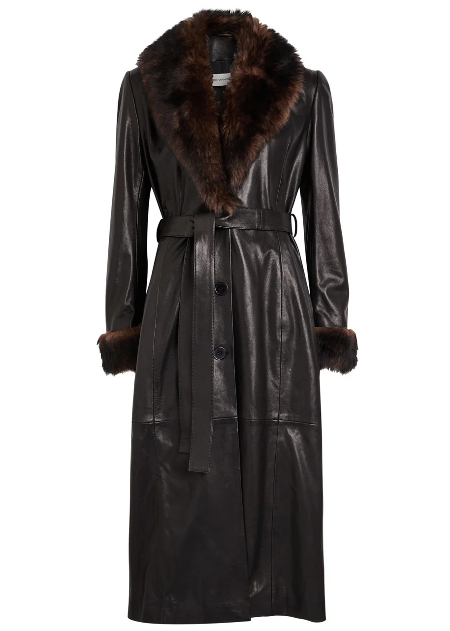 Nour Hammour Baez Fur-trim Leather Trench Coat