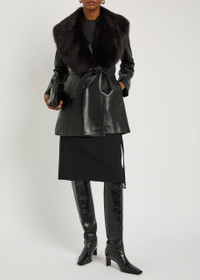 Nour Hammour Kelsey Fur-trimmed Belted Leather Jacket