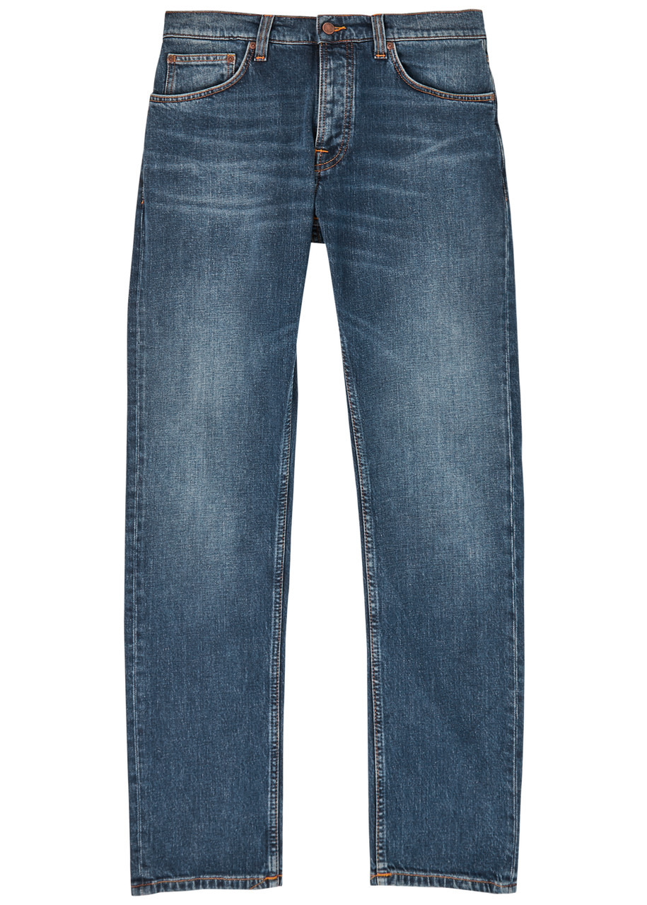 Info & Care Nudie Jeans stretch-denim jeans Mid-rise fit, slim-leg cut, belt loops, five pockets, signature stitching at back pockets, designer plaque at back waist and pocket, whiskered, contrasting stitching, faded finish Partially concealed button fastenings at front 99% cotton, 1% elastane Machine wash cold inside out to avoid colour transfer Size & Fit Front rise: 10 inches/ 25.5cm Inside leg length: 30.5 inches/ 77.5cm Midweight Model is 6'3"/ 191cm and wears a size;W32