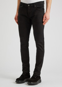 INFO & CARE - Nudie Jeans black stretch-denim jeans - Mid-rise fit skinny cut belt loops five pockets designer plaque faded finish - Partially concealed zip and button fastening at front - Designer wash: Everblack - 99% cotton 1% elastane SIZE & FIT - Machine wash cold inside out to avoid colour transfer - Inside leg length: 32 inches/ 82cm - Front rise: 9 inches/ 23cm - Midweight - Model is 6'2"/ 187cm and wears a size UK W32