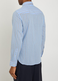 Info & Care Officine Generale cotton shirt Striped, button-fastening cuffs, curved hem Button fastenings through front 100% cotton Machine wash Size & Fit Length shoulder to hem: 27 inches/ 68.5cm Midweight Regular fit Model is 6'2"/ 188cm, chest size 38 inches and wears a size medium