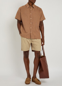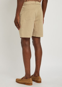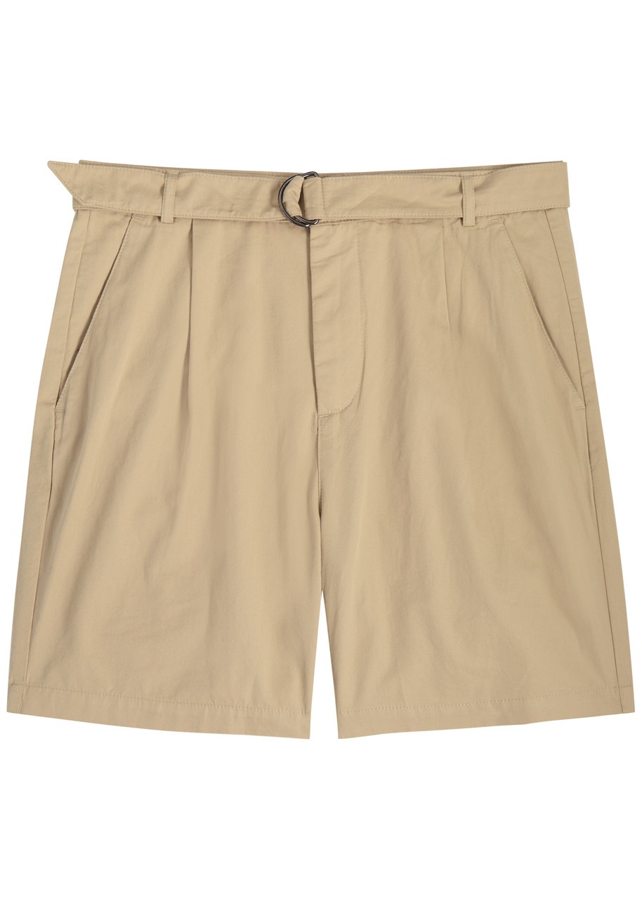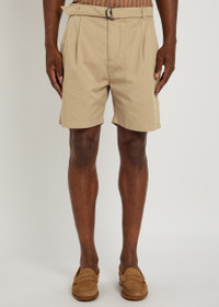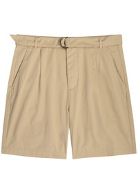 Info & Care Oliver Spencer cotton shorts; Belt loops, detachable D-ring fastening belt, pleats at front waist, side slip pockets, back patch pockets Partially concealed button and zip fastening at front 100% cotton; lining: 50% polyester, 50% cotton Machine wash Size & Fit Length waist to hem: 18.5 inches/ 47cm Midweight Regular fit Model is 6'1"/ 185cm and wears a size medium