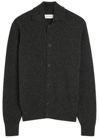 Jarvis Jacquard-Knit Merino Wool Cardigan Charcoal